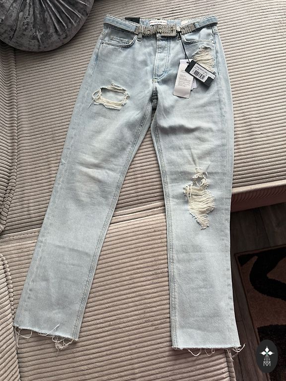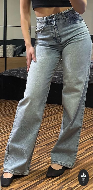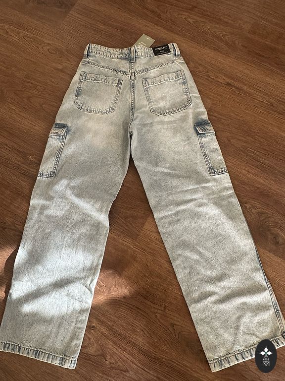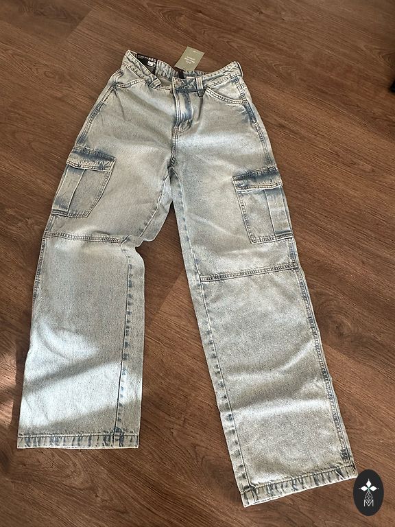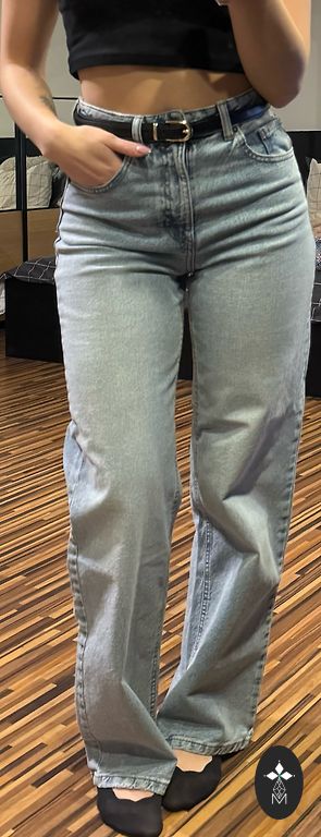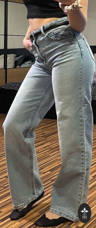 Naujas, aktuali spalva, aukštas juosmens, platėjančios klešnės. Stabilus 48 dydis. Minkštos, patogios. Ilgis 111cm Vidinė klešnė 81cm Juosmuo 49cm×2 Klubai 60cm×2