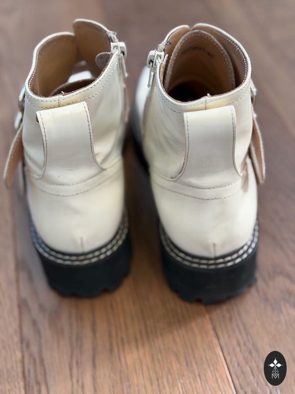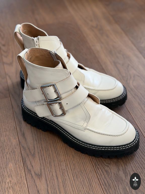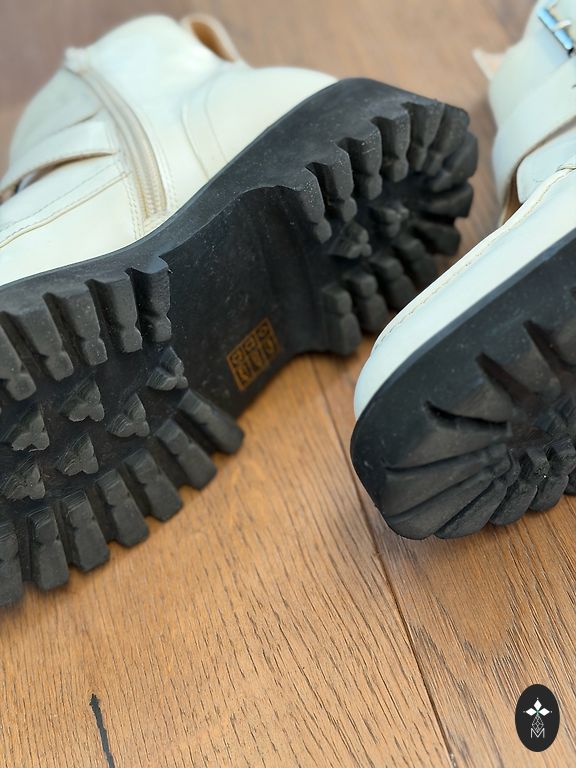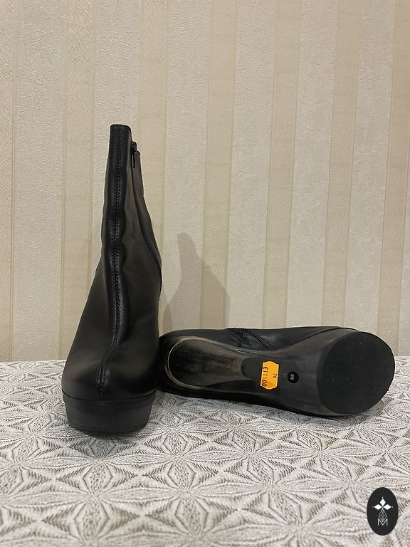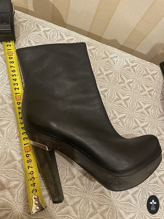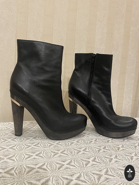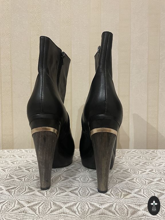 Nahast poolsaapad ilma defektideta. Platvormi kõrgus 10 cm, esiosa kõrgus 2,5 cm, sisetalla pikkus 26,5 cm.