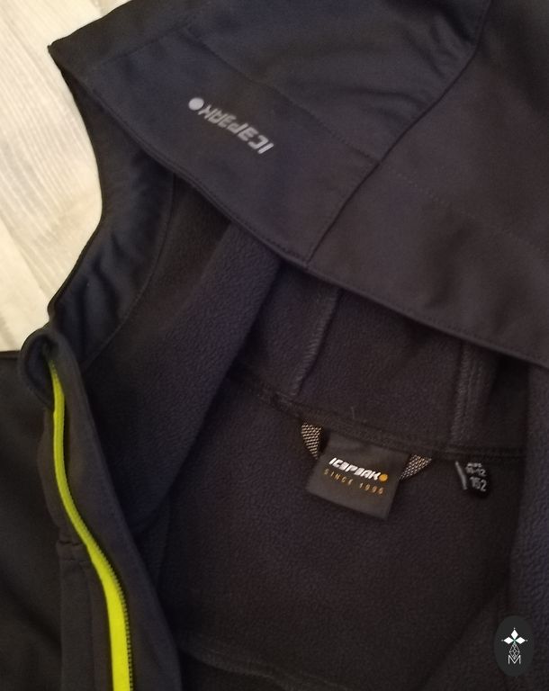 Worn for a short time last autumn season as an outdoor jacket to school. Front and back like a quilted jacket, sleeves, side part, and hood made of softshell. Sleeve length from collar seam 53.5 cm, length along the back from collar seam - 55.5 cm. In excellent condition.