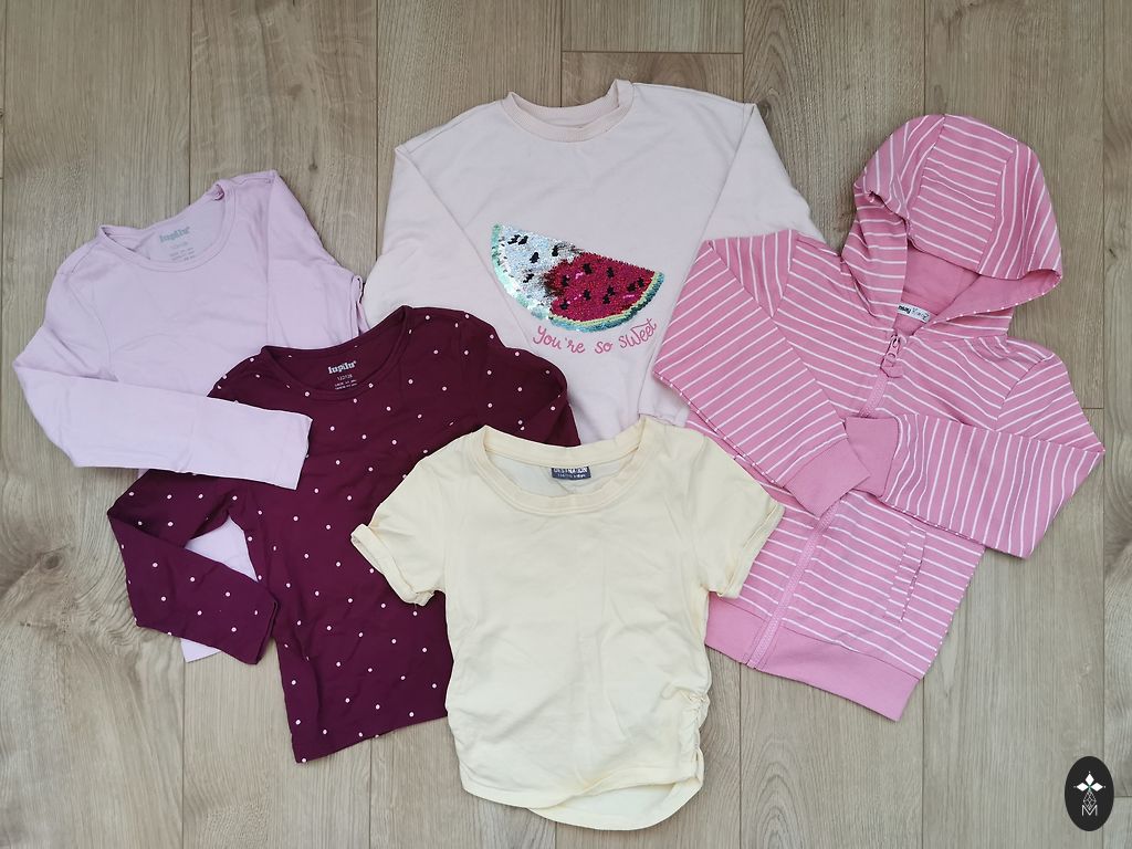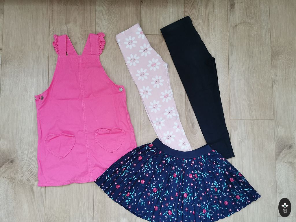 Skirts, pants, leggings, t-shirt, robe, sweater.