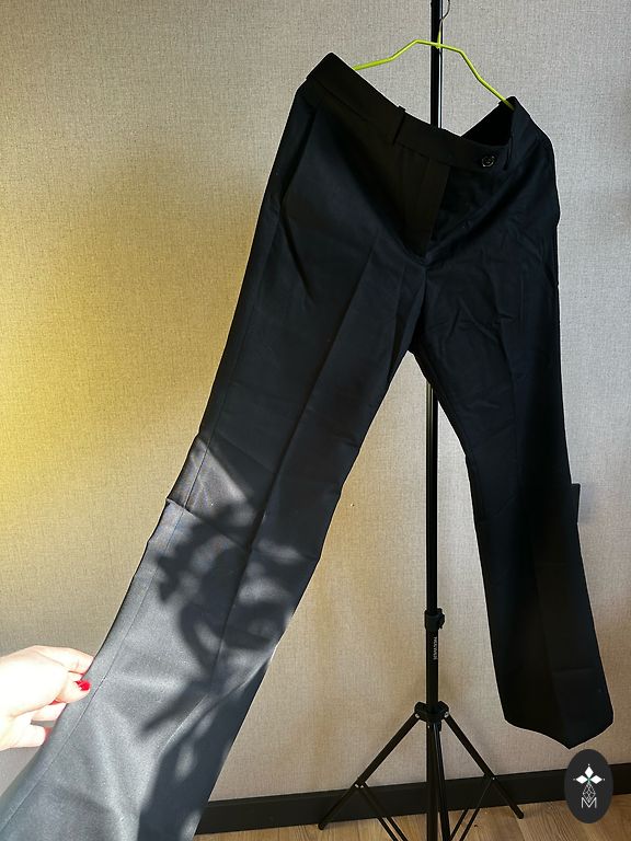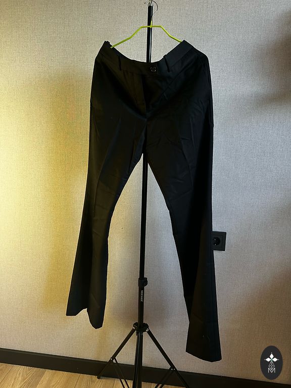 Foršas papaya bikses ar melnbaltu rakstu.