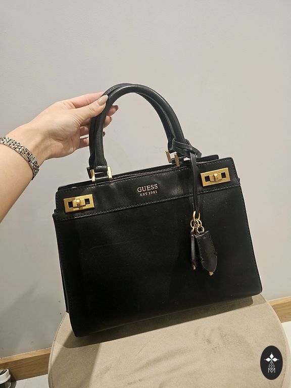 Selling a Guess handbag in good condition, includes a dust bag, decorative charm, and extended strap, originally this bag costs 170 EUR. To view better: