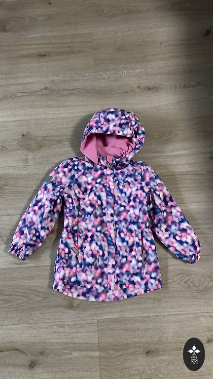 Ribotas laidos Reima vėjapūkas su labai gražiu spaudiniu. 104 dydis. Apskritai labai geros būklės, tik atidžiai žiūrint radau kelias mažas dėmeles.
