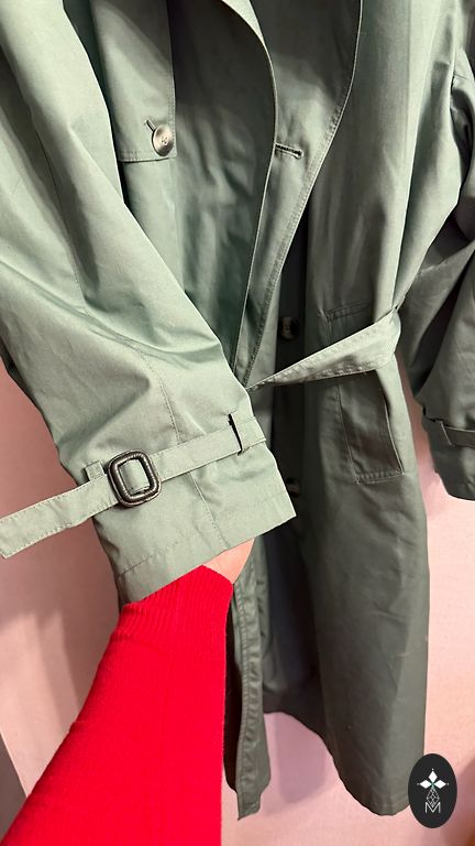 Platus apykaklė ir sagos užsegimas. (Paslėptas užsegimas, matoma tik viršutinė saga) Trumpesnės rankovės (3/4 ilgio) suteikia modeliui stilingą išvaizdą ir leidžia nešioti paltą su ilgomis pirštinėmis ar megztiniu.