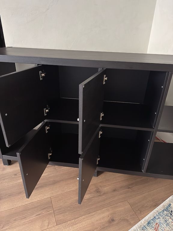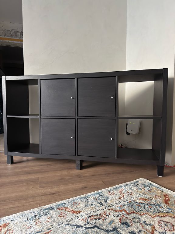 Anksčiau stovėjo horizontaliai ant grindų kaip žema lentyna (patogu dėžėms, žaislams ar knygoms). Nuotraukose šiuo metu matoma pastatyta vertikaliai.