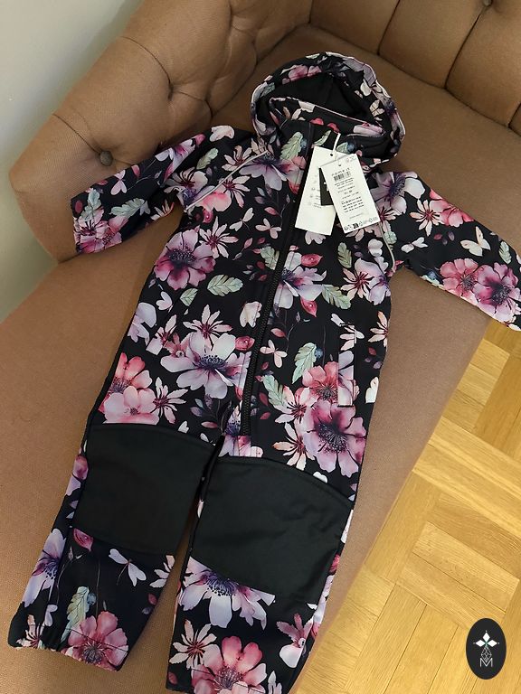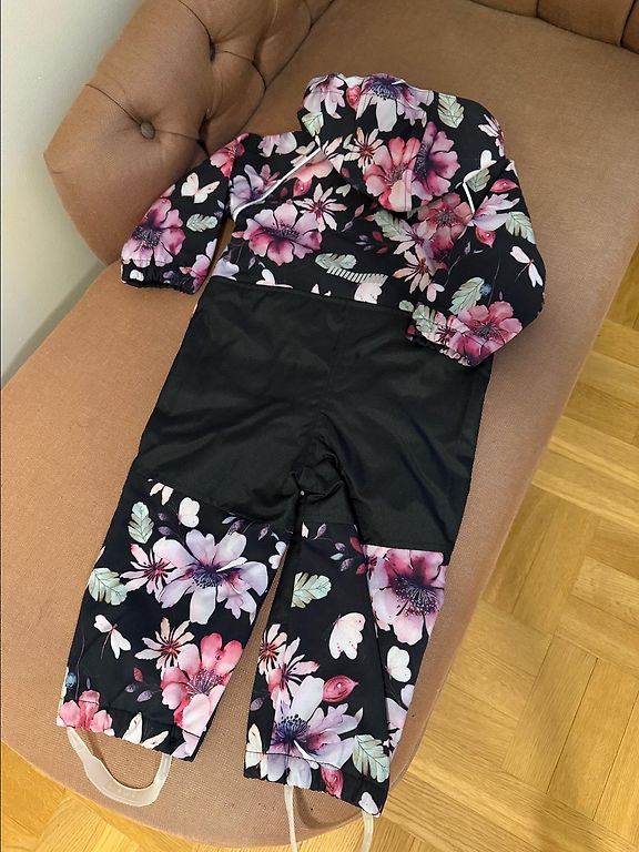 Naujas 92 dydžio kombinezonas. Dėkingas audinys, nesimato dėmių. Toks pat yra ir mažesnis dydis, kurį nešiojame. Gaubte įsiūta papildoma kraštelė, kad nenukristų. Bendras ilgis 85-86 cm.