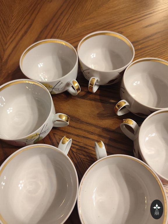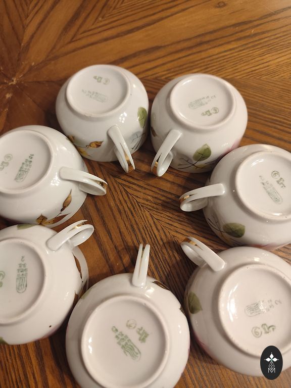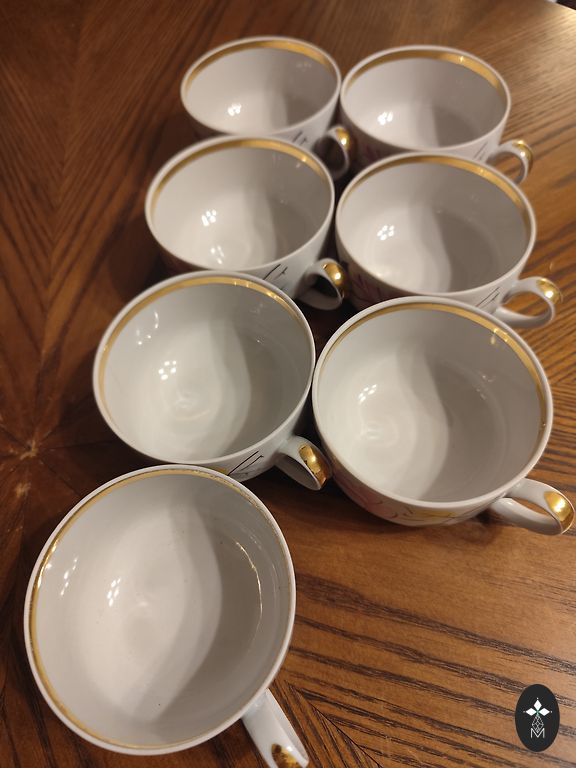 Cukura trauks bez šķembām un plaisām, ļoti labā stāvoklī. Var pārdot tikai cukura trauku (60€). Tējkanna ir salīmēta, bet vāks ir vesels. Sūtīšana no Lietuvas, iepakojumu garantēju +2€ Omniva.