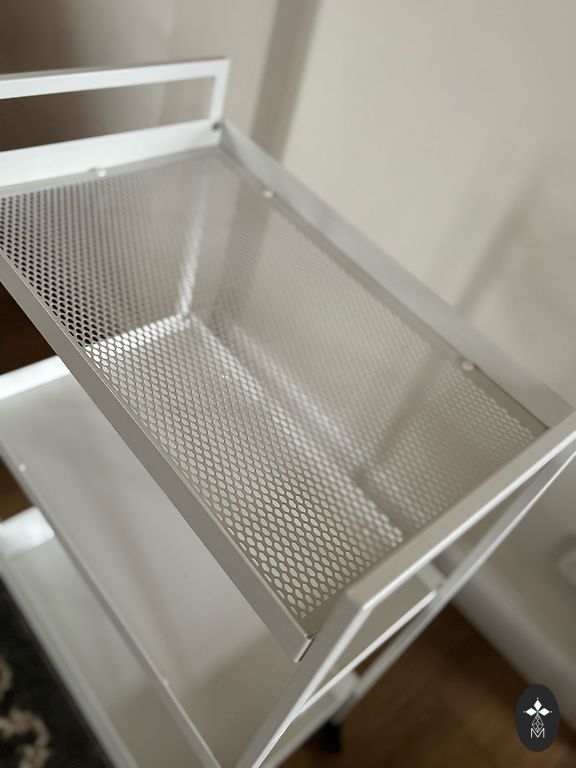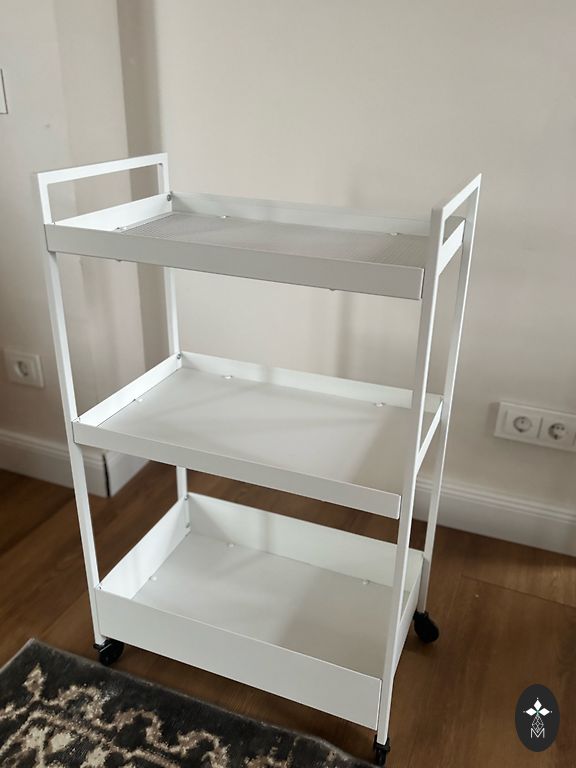 valge metallriiul Ikeast, heas seisukorras, defektid puuduvad. Sobib nii sise- kui välistingimustesse. Kõrgus 90 cm, laius ja pikkus 40 cm. Asume Grīziņkalnā.