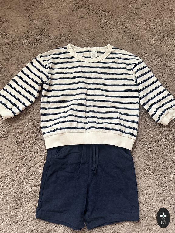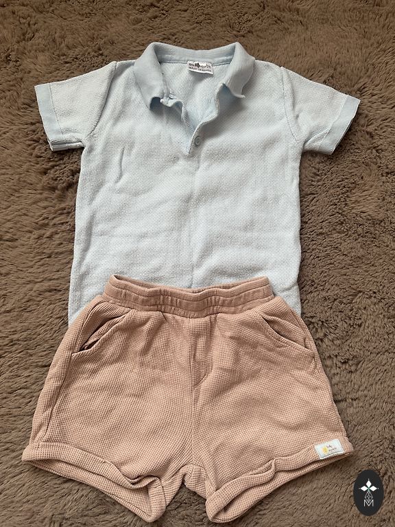Viskas geros būklės. Odinės sandalės 23 dydžio. Sportbačiai 25 dydžio. Drabužiai visi švarūs, išplauti. Deja, negaliu visų drabužių komplektų įkelti į parduotuvę, daugiau nuotraukų atsiųsiu privačiai.