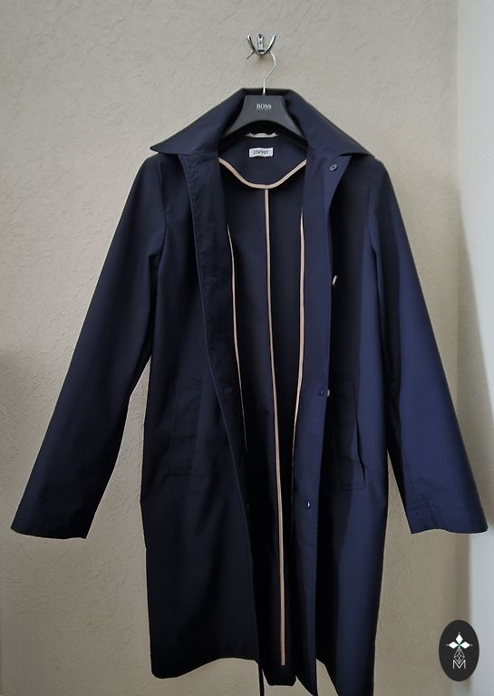 Anette stilīga tumši zila (gandrīz melna) jaka bez pogām, ar oriģinālo saspraudi, līdz ar to derēs izmēram no M kā oversize līdz L, neatkarīgi no vidukļa apjoma.