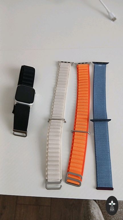 Pārdodu Apple Watch Ultra 49 mm Titanium ar Blue/Black Trail Loop siksniņu (S/M).
