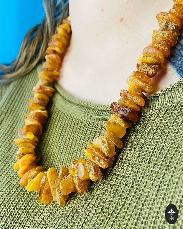Tradicionāla stila Baltu kaklarota no dabīgām, nepulētām dzintara pērlītēm. Kaklarota lieliski izskatīsies pie senlatviešu tautas tērpiem kā arī būs lieliski piemērota priekš ikdienas valkāšanas. Kaklarotas svars: 27 grami