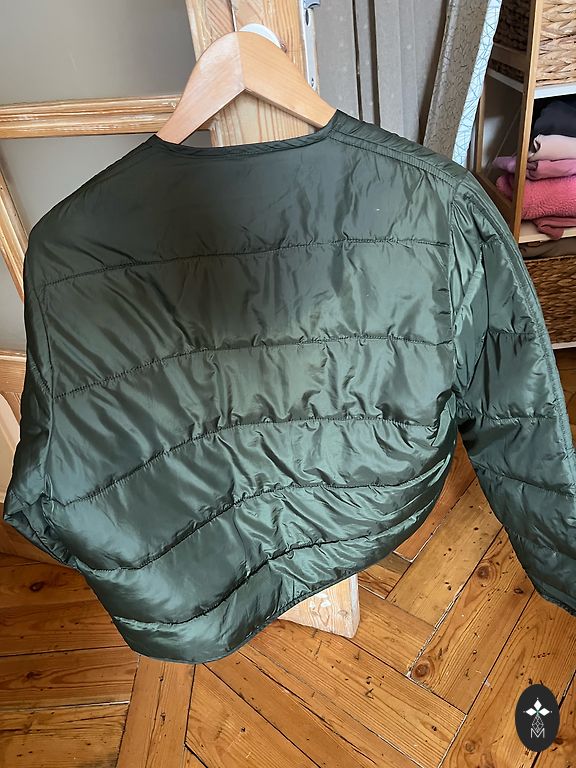 Sunku pagauti tinkamą toną nuotraukoje, bet daugiau žalios. Ilgis 62 cm, rankovė nuo peties 62 cm, po pažastimi 53 cm.