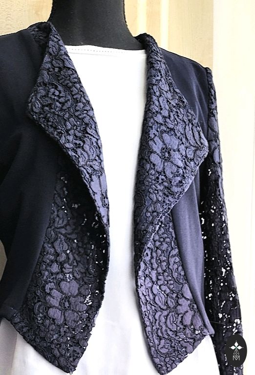 Ērta triko auduma ikdienas žakete baložu pelēkā krāsā ar ziliem atlokiem. Derēs sievietēm, kas valkā 36-38 izmēru. Garums 68 cm, piedurknes garums 60 cm, krūšu apkārtmērs 94 cm.
