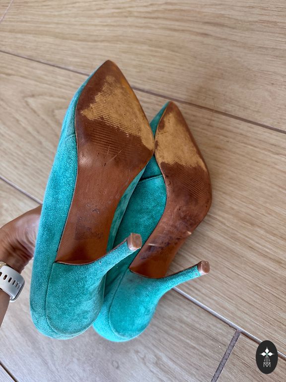 Stylish leather shoes, but I'm not used to walking in such high heels. Rarely worn, show signs of use, but look like new from the outside.