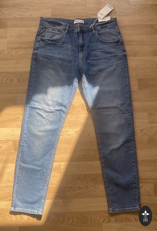 Parduodu naujus džinsus su etiketėmis. Niekada nedėvėti, būklė ideali. Klasikinė šviesiai mėlyna spalva ir patogus slim kirpimas, gerai priglunda ir tinka kasdienai. Pirkti už 30€, parduodu, nes netinka dydis. Jei turite klausimų ar reikia papildomų nuotraukų, drąsiai rašykite.
