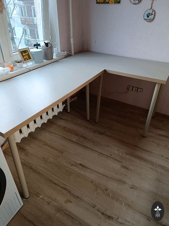 Baro stalas su lentynomis