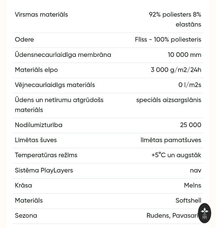 | Medžiaga | Softshell |