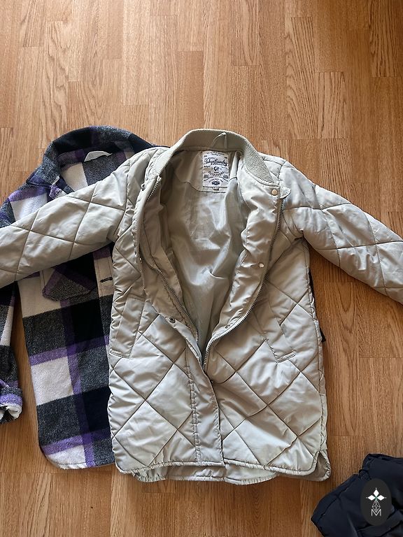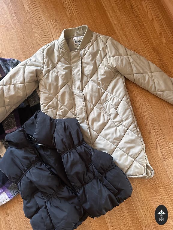 Reima 128 dydis. Šiltam pavasariui/rudeniui, vėsiai vasarai. Užtrauktukas veikia gerai. Kišenės su užtrauktuku. Gobtuvas nusegamas. Vietomis ant balto audinio yra dėmių, tačiau jos nėra pastebimos dėl margumo.