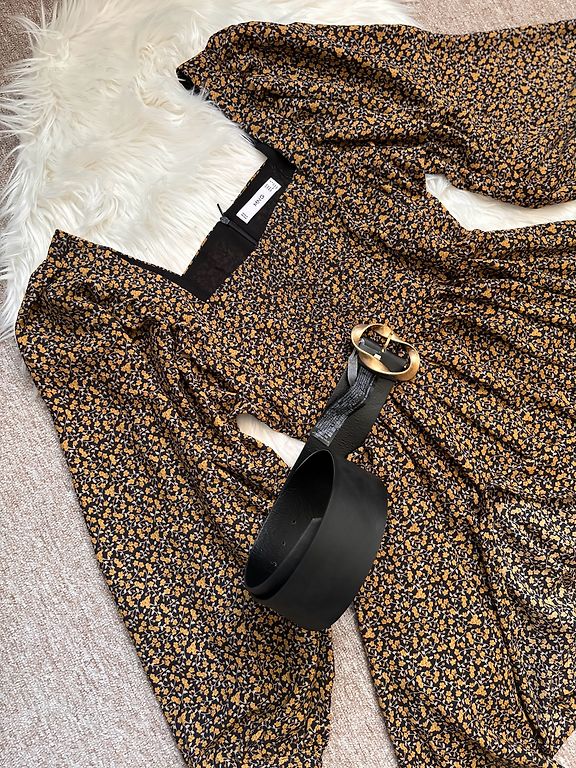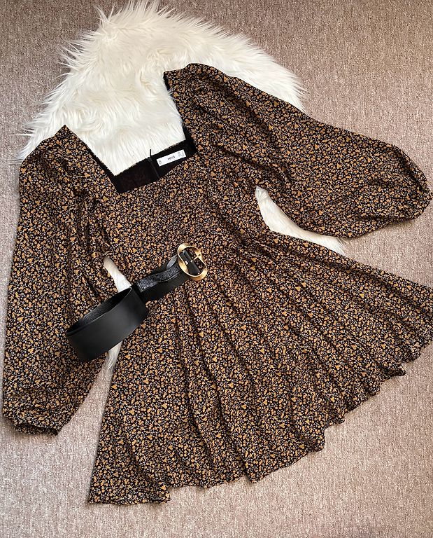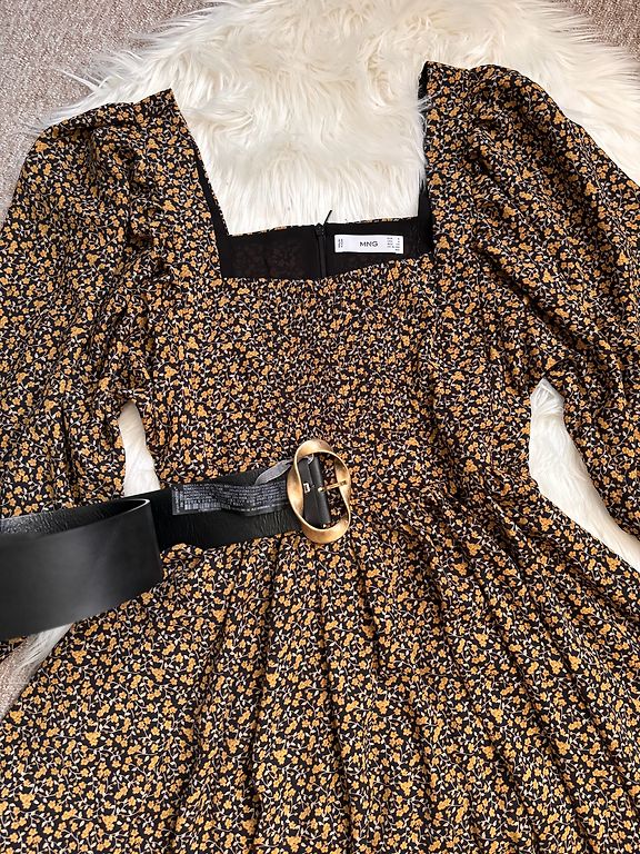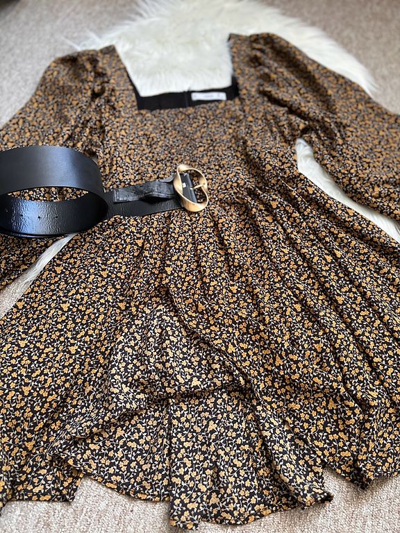 Parduodu klasikinę suknelę, kuri visada madinga. Mažas stovimos apykaklės, rankovės ilgos su platėjančia apatine dalimi. Suknelė šiek tiek platėja žemyn. Galima nešioti su diržu, šiuo ar bet kuriuo kitu. Suknelės ilgis nuo peties 87 cm, rankovių ilgis 67 cm, krūtinė 90 cm, vid. 86, reguliuojama dirželiu.