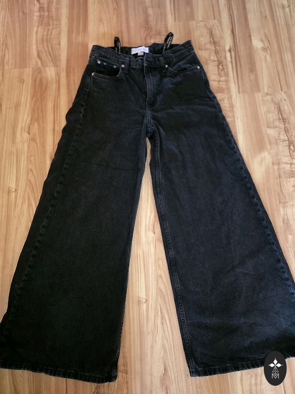 Džinsi, garums 110 cm, viduklis 80-84 cm. Ar elastānu - stiepjas.