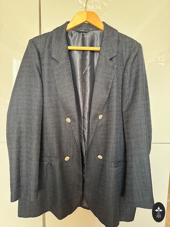 Švarkelis yra geros būklės, nėra matomų pažeidimų. Galbūt yra keletas burbulų, tačiau juos tikrai galima pašalinti pūkų šalinimo įrankiu.