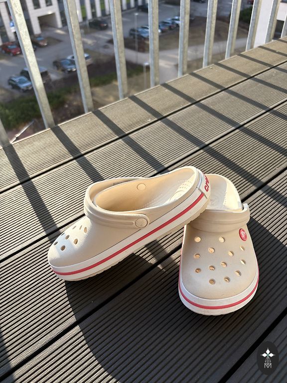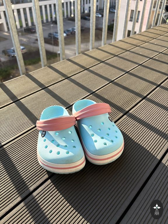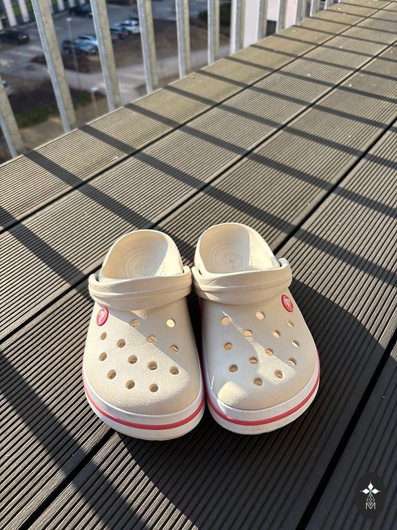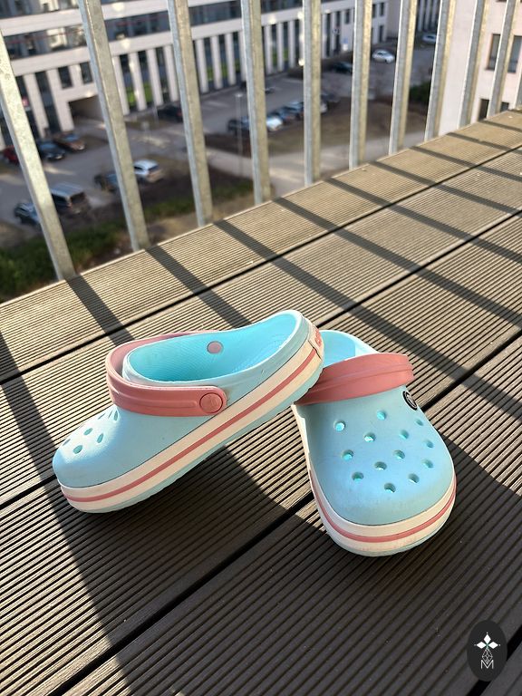Pārdodu stilīgus Crocs apavus ar dekoratīviem piekariņiem (Jibbitz). Komplektā nāk vairākas zelta krāsas dekorācijas un ķēdīte, ar kurām var mainīt apavu izskatu pēc noskaņojuma. Apavi ir ērti, viegli un labā stāvoklī. Ideāli vasarai, pludmalei vai ikdienai.