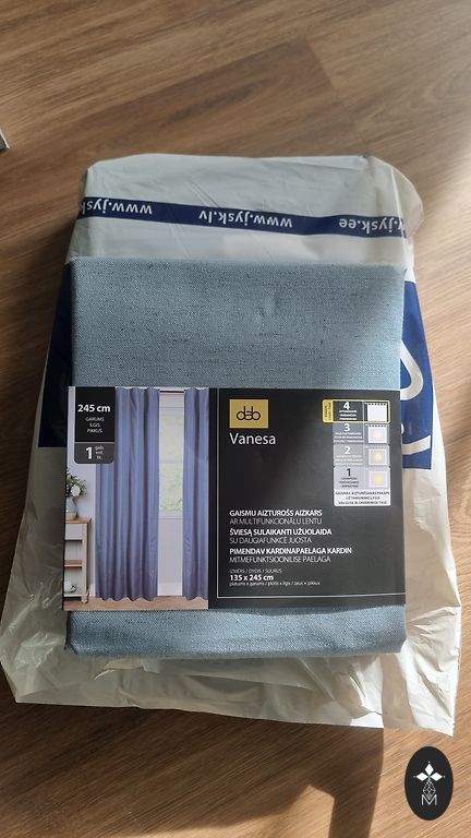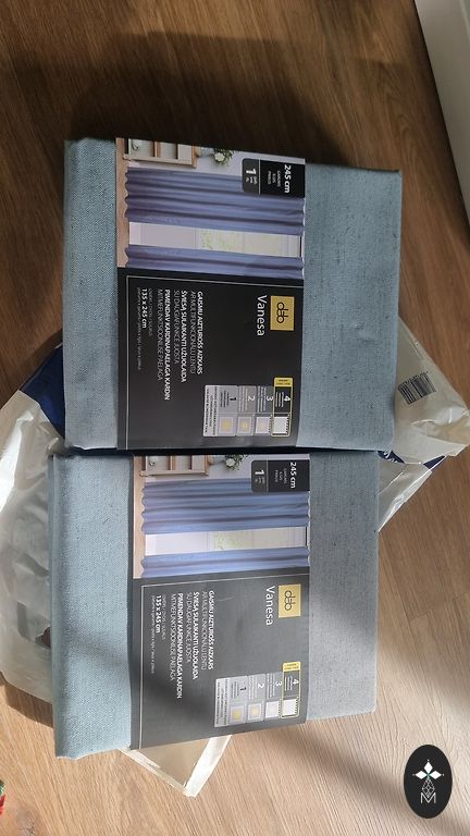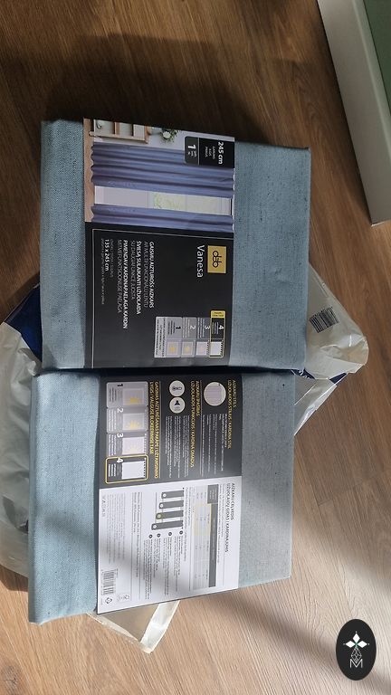 Thick, beautiful blue curtains, there are more but taken out of the box.