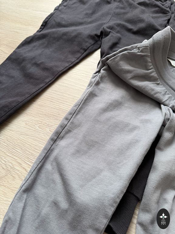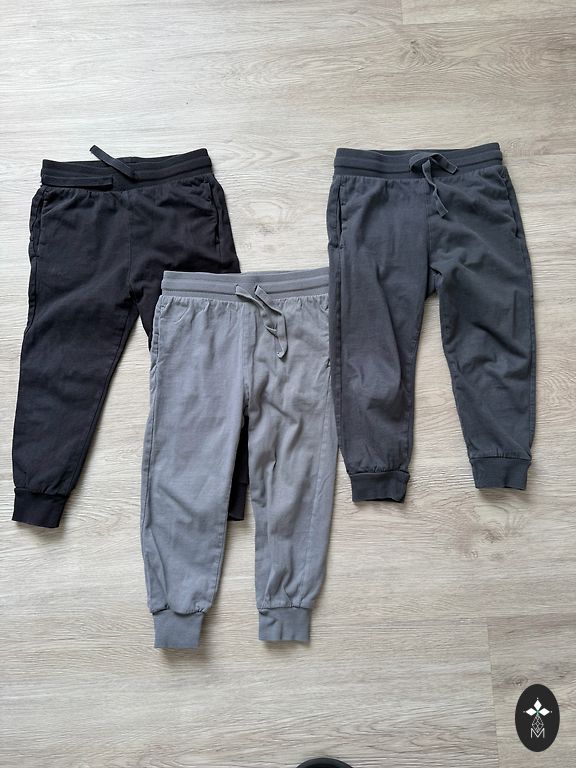Müün 2 paari spordipükse. Vasakpoolsed on uued ja õhukesed, parempoolsed on soojustusega. Mõlemad on 128 cm, kuid sobivad paremini 122-128 cm.