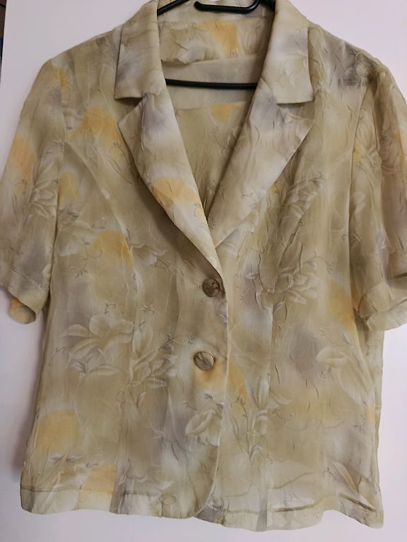 Žakete labā stāvoklī ar oderi. Krūšu izmērs 132 cm, garums 78cm.