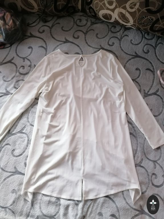 Указан размер Л но больше подойдёт на ХЛ размер, объем в груди без растягивания 106 см, талия 94 см и длина 130 см, с боку разрез и материал тянется