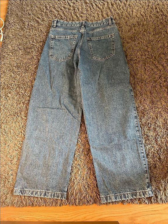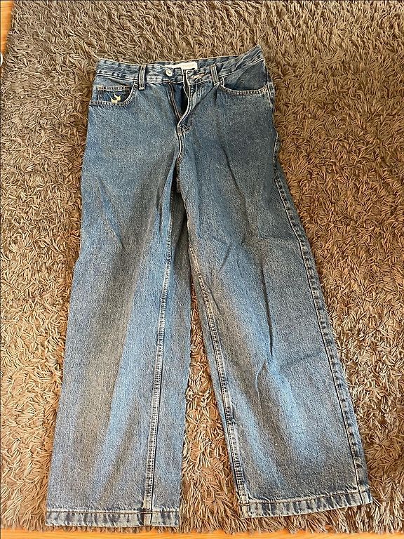 Baggi tipa džinsi ar elestānu. Ir kabatas. Nav biezas. Pavasaris/vasara. Jostas vieta uz gumijas no 80- 120, gurni 140, garums 97, ieksējā vīle 60