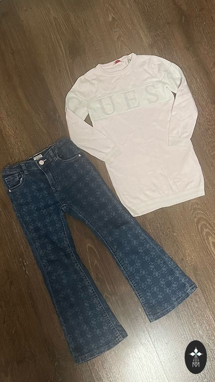 Kleita no viegla kokvilnas auduma, labota jostasvieta( pie šuvējas mežģīne iešūta), nedaudz blāvāks audums, citādi viss labi(122/128 izm.), bomber jakai sulīgas krāsas, kabatas, siltāka kā parastā iekštelpu jaka( 128 izmērs)