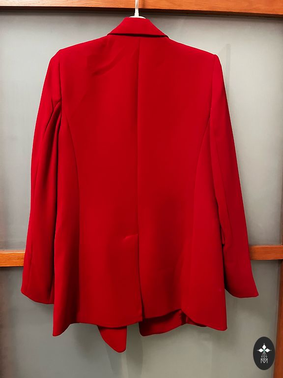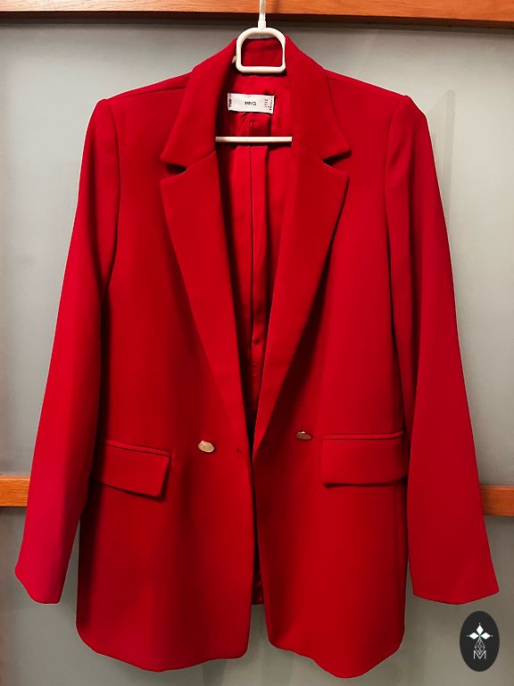 New, boucle-like fabric jacket. Only tried on to understand that it's slightly too big. I am a standard S, and in this case, a size 34 should have been chosen instead of 36. Jacket length is 75cm, sleeve length approximately 65cm, shoulder width 42cm. The fabric is non-stretchable.