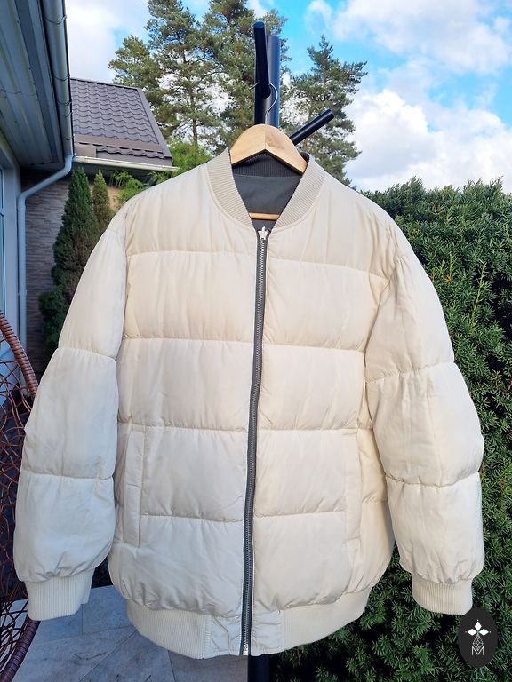 Межсезонная куртка светло-хакки цвета.