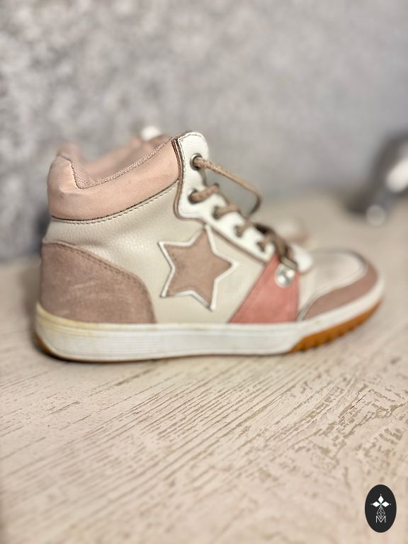 Labai geros, patogios, minkštos padas. Yra vizualinių trūkumų - viršutinės odos nusitrynimas, tačiau funkciškai viskas labai gerai. Muki.lv pagaminti basutės. Vidpadis 14,3 cm