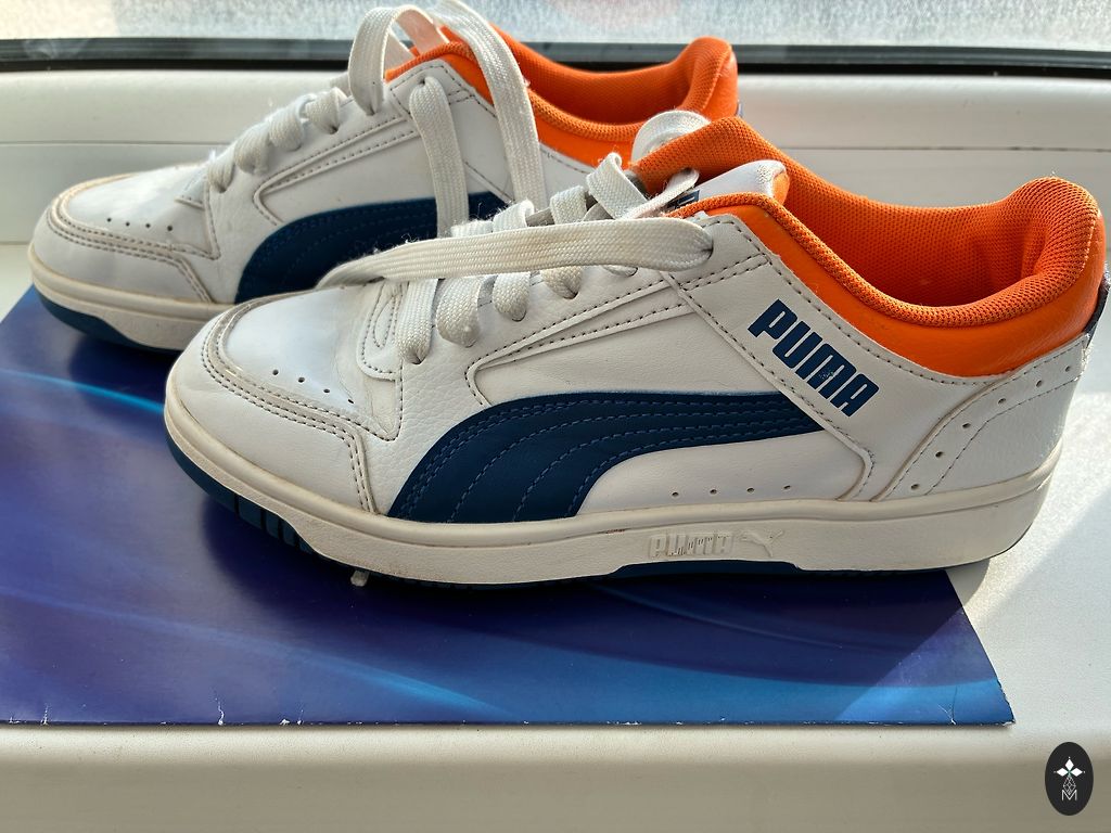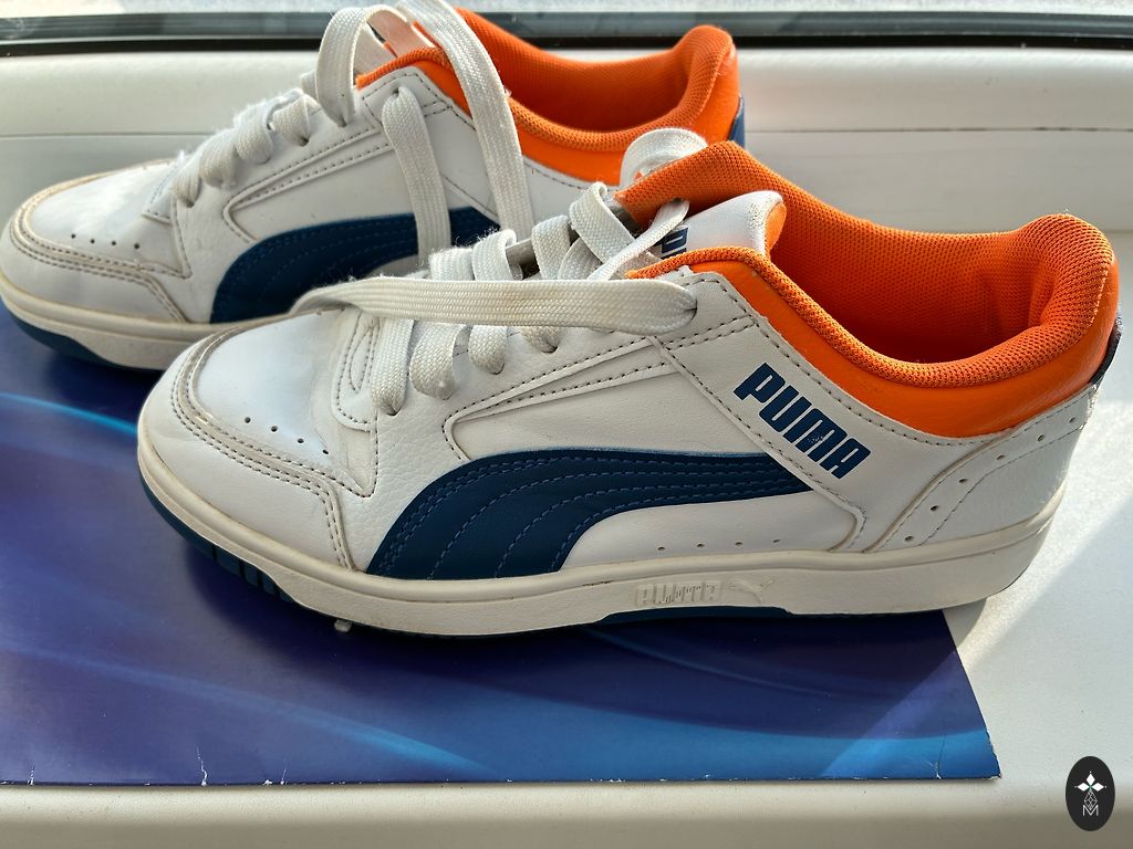 Brīvà laika apvavi , lietoti maz . Bildē redzems defeksts , labās kājas iekšpusē nolūzis dekors .