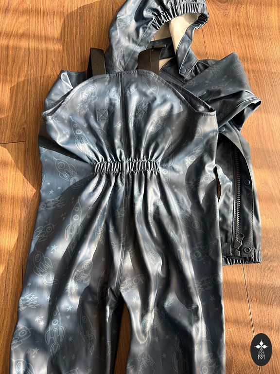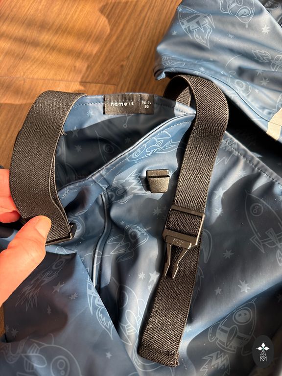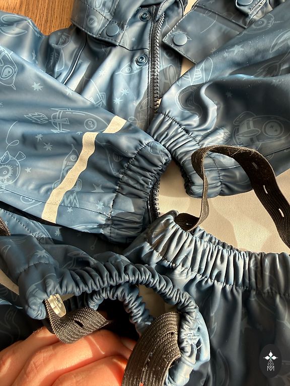Liemuo reguliuojamas su guma, kelnių galų plotis reguliuojamas su lipukais.