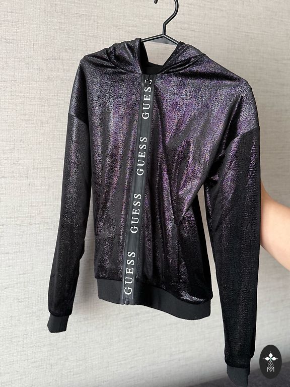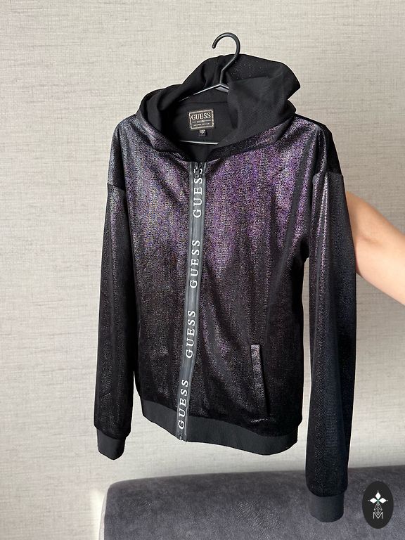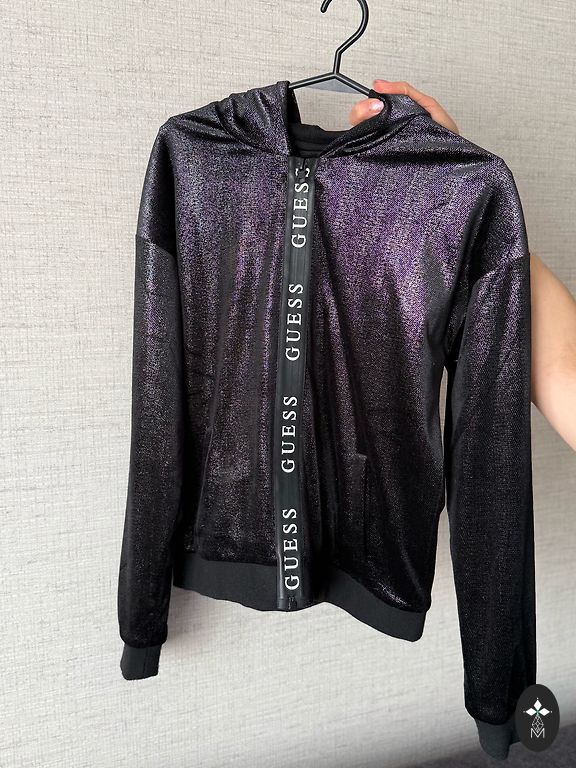 Идеальный вариант на весну — лёгкая, но тёплая, хорошо держит форму и защищает от ветра. Стильный фирменный принт Guess, удобный капюшон и молния по всей длине.