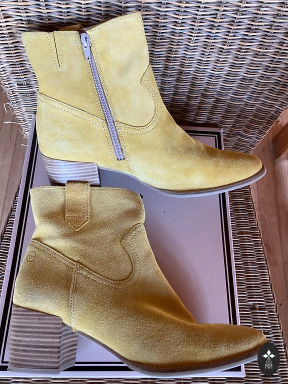 Brīnišķīgi balti pavasara zābaciņi,priekšā melns rāvējslēdzejs.Norādits 41 izmērs,tacu ir uz 42 izmēru.Izskatās ļoti eleganti ar gaišām biksēm.