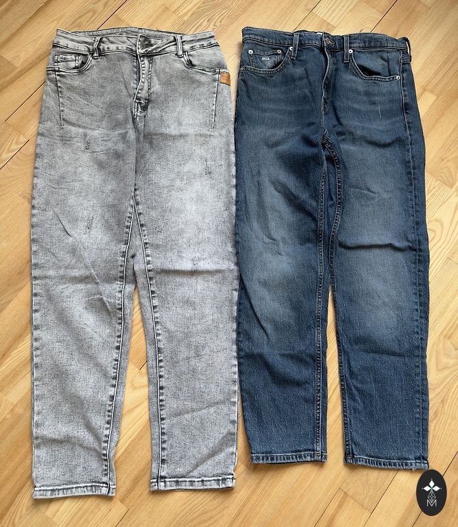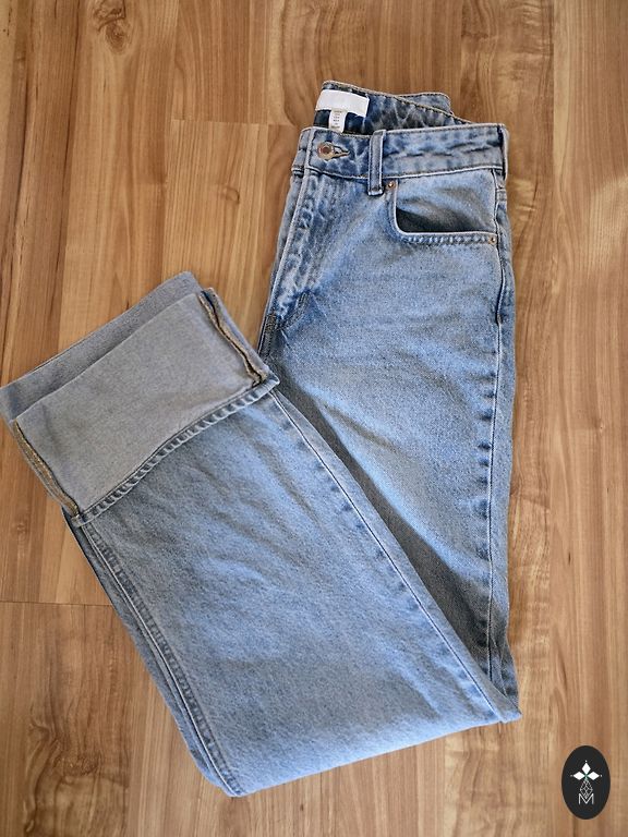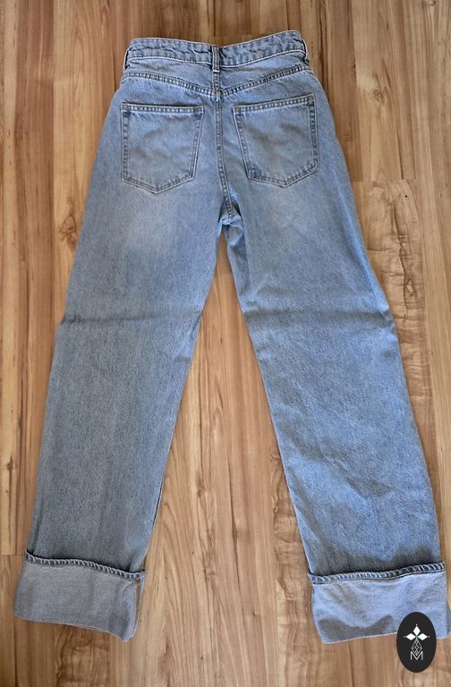 36.izmērs, blāvi zilas. Viduklī platums 36cm, staras garums pa iekšējo vīli-:78cm.Vilktas 2 x un izmazgatas Dpd+ 2,