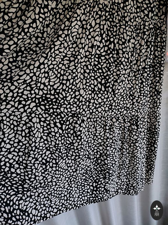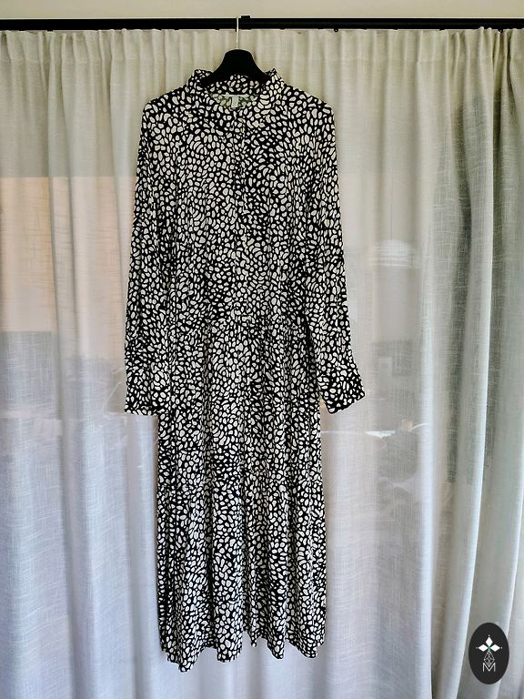 Esprit 100 % viskozes kleita. Rāvējslēdzējs mugurpusē. Audums nedaudz pabalējis (var redzēt fotogrāfijās).
