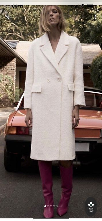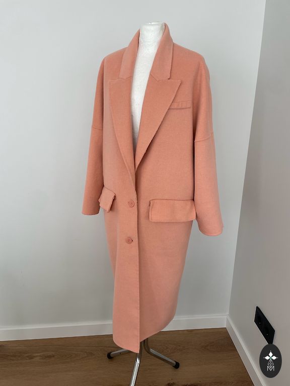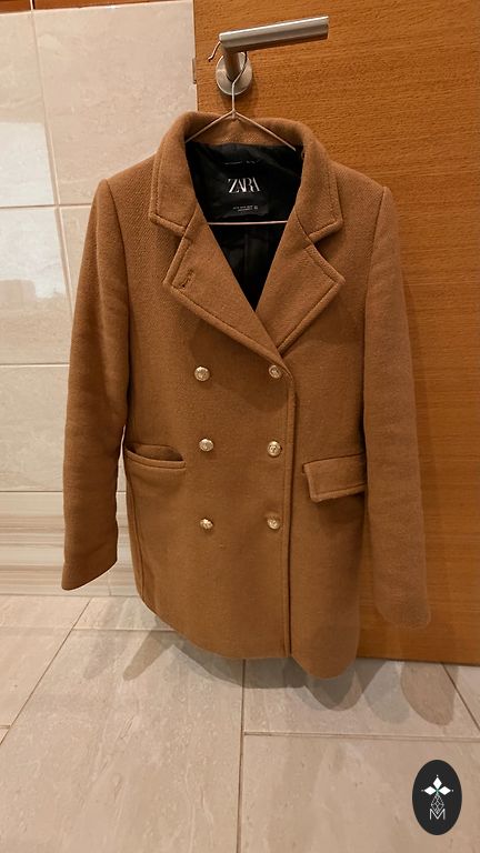 Zara mazlietots mētelis, ļoti skaista burgundi krāsa. Garums no pleca šuves 86 cm, krūtis 44 cm, plecos 42 cm, piedurknes 60 cm.