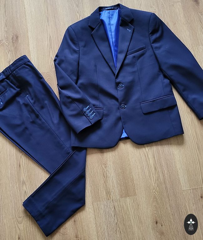 Parduodu vaikišką kostiumą (122 dydis) Komplektą sudaro kelnės, marškiniai su prisiūtu peteliškiu ir liemenė. Kelnės: Juosmuo su guma Juosmuo: 25 × 2 cm (labai gerai tempiasi) Ilgis: 70,5 cm Marškiniai: Ilgis: 47 cm Plotis po pažastimis: 39 cm Rankovių ilgis: 44 cm Peteliškė prisiūta Liemenė: Ilgis: 41 cm Plotis: 36 cm