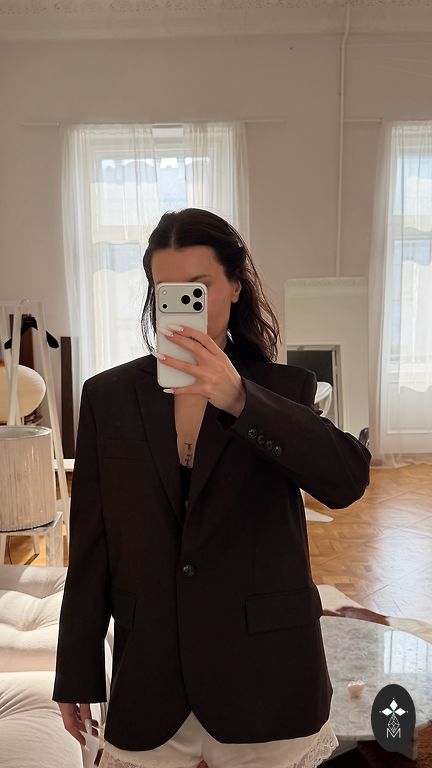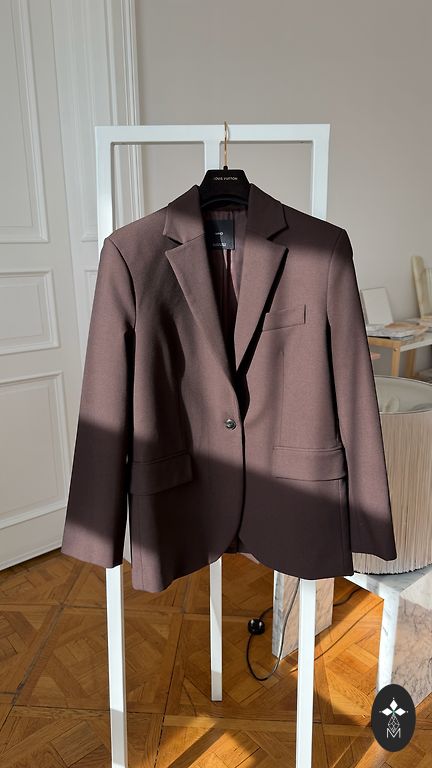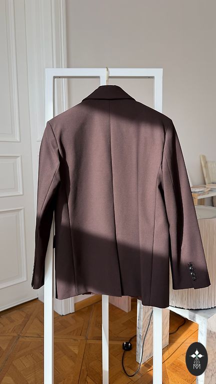 Šokolada krāsas klasiska žakete , ar leoparda raksta oderi . Bez pogām . Krūšu apkārtmērs 100 cm, garums 78 cm.