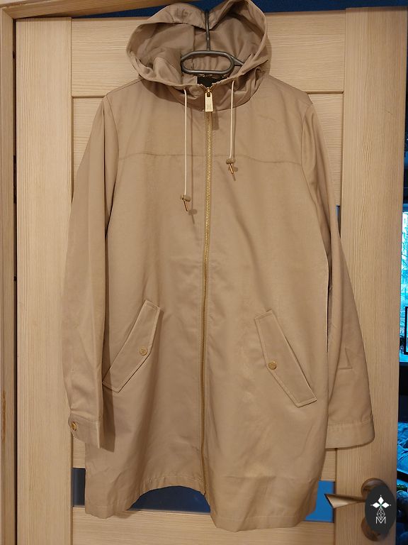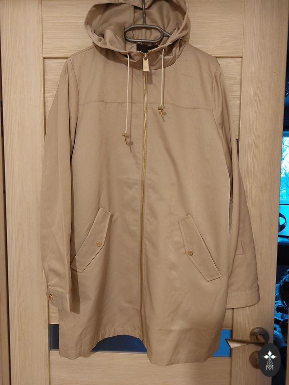 Новая, качественная ветровка оливкового цвета, размер 42, внутренние карманы, съемный капюшон.