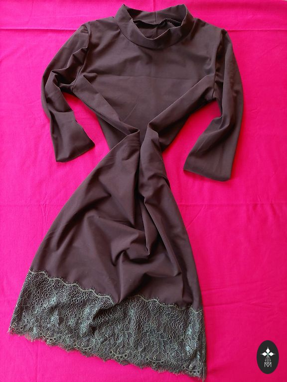 Mohairinis megztinis su organzos kaspinu.