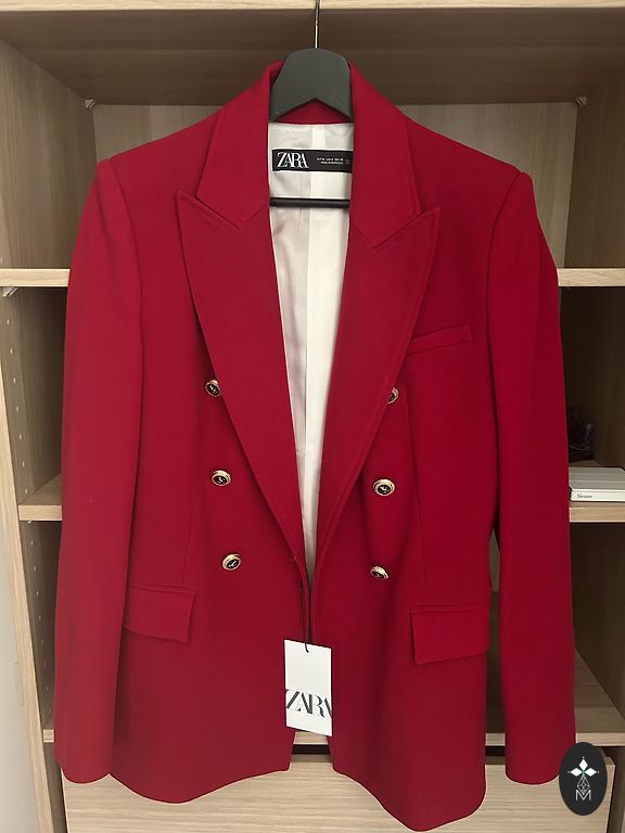ZARA S izm žakete pakarinātā, ar zelta aizpogājamajā pogām. Iet pāri gurniem. Jā ir vilkta, jā ir kāda diedziņš pavlcies šur tur ārā. Bet nesājot ir super patīkama, karakliska un ērta, žēl bet iesaku! Dikti mīļa, lai daiļotu kādu vēl! ❤️🔥