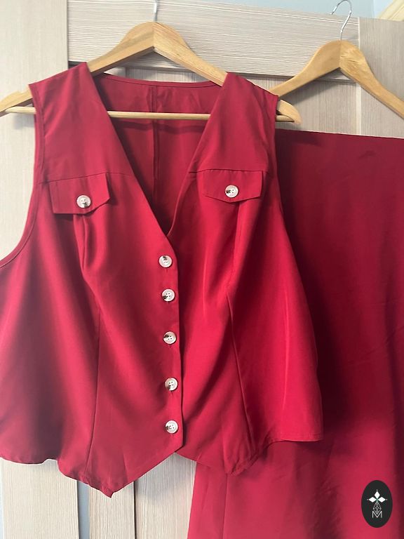 Sveikas! Pārdodu savu (1 vilkto uz fotosesiju), skaisto pērli. Interesanta kleita, augšpusē blūze, apakšā kā āda. Klāt nāk josta. Izm.48.
