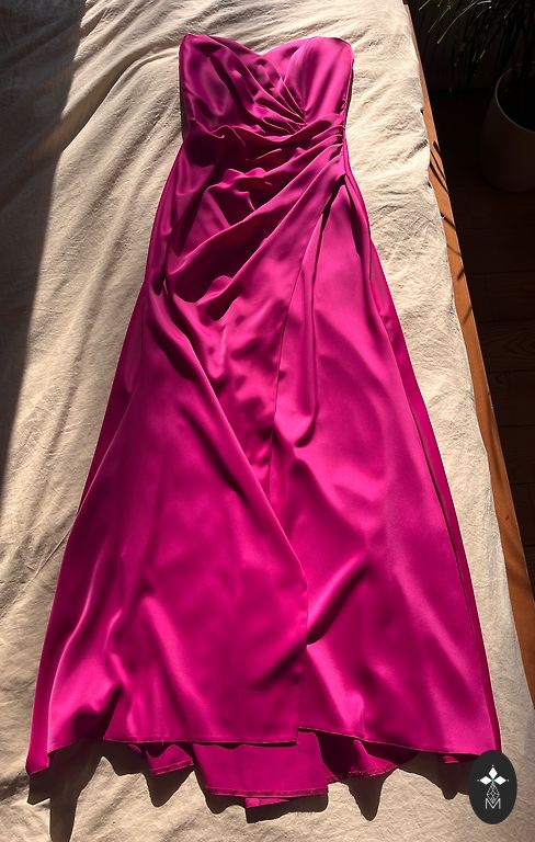 Vakarkleita/ svinību / īpašu notikumu kleita. Satīnīgs audums, lieliski krīt un izskatās uz auguma. Derēs S/M izmēram.